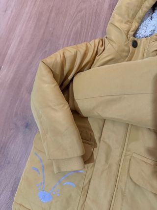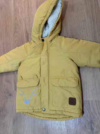 Abrigo infantil de color mostaza, ideal para los meses más fríos. Cuenta con un forro interior suave y cálido. - Talla 18-24 meses. - Diseño con capucha. - Bolsillos delanteros. - Cierre de botones.