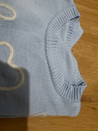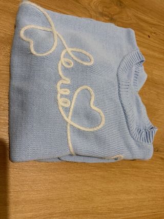 Jersey de punto en tono azul claro, con un diseño de letras blancas. - Detalle de letras blancas. - Cuello redondo. - Puños y bajo acanalados.