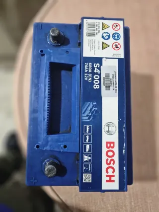 Batería de coche Bosch S4 008. - Capacidad: 74Ah. - Corriente de arranque en frío (EN): 680A. - Voltaje: 12V. - Fabricada en Alemania.