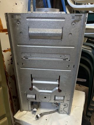 Cerradura completa con signos de óxido. - Mecanismo de cerradura. - Manilla de metal.