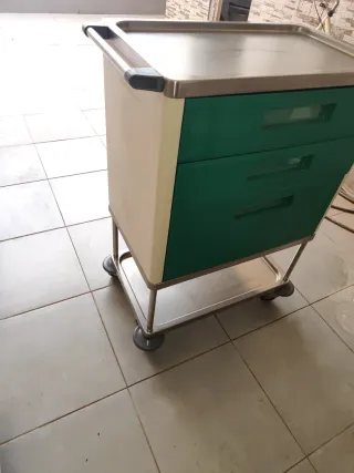 Carro auxiliar médico verde y plateado