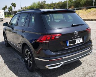Ocasión Volkswagen Tiguan 2.0 TDI Life 2021 negro perlado– Muy cuidado y equipado Vendo Tiguan diésel, automático, 150 CV, en perfecto estado. Único propietario. Comprado nuevo en septiembre de 2021. Tiene 100.216 km, revisiones al día. ITV pasada en septiembre 2025. Equipamiento destacado (versión Life): Pantalla táctil, Apple CarPlay / Android Auto, Bluetooth, USB-C, navegador, duplicación de pantalla, volante multifunción de piel, control de crucero adaptativo, sensores y cámara de aparcamiento, faros LED, climatizador bizona, sensores de luz, retrovisores eléctricos y plegables, llantas de aleación 18", frenada de emergencia, aviso de cambio de carril, botón SOS y más, Pack assit Paquetes del coche: Paquete lanzamiento Life España Cámara de marcha atrás real view Paquetes asistentes a la conducción "plus" Rueda de repuesto, peso y espacio reducidos A los 80.000 km puestas cuatro ruedas nuevas. A los 100.000 km última revisión del coche. Distintivo ambiental DGT: C Perfecto para uso familiar: amplio y fácil de aparcar con el park assit, cómodo, muy eficiente en consumo y va genial en carretera.