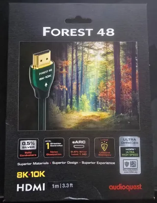 Cable HDMI AudioQuest Forest 48 de 1 metro de longitud, compatible con 8K-10K. - Conductor de plata 0.5%. - Nivel 1 de disipación de ruido. - Soporte eARC. - Certificado ULTRA HIGH SPEED.