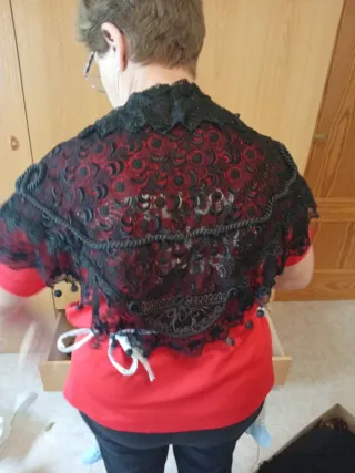 Mantón de encaje negro antiguo