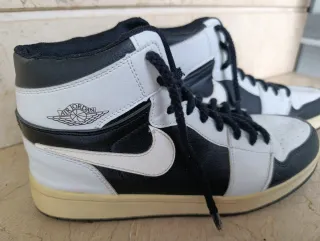 Zapatillas de baloncesto Air Jordan 1 High OG con poco uso. - Diseño clásico de caña alta. - Combinación de colores blanco y negro. - Detalle del logo Air Jordan en la lengüeta.