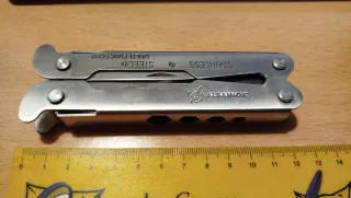 Herramienta multiusos Albainox fabricada en acero inoxidable. - Diseño compacto y duradero. - Marcaje STEEL y STAINLESS visible.