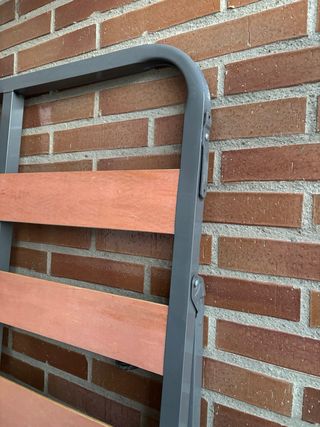 Somier de madera con estructura metálica y patas plegables. - Medidas: 1,90 metros de largo por 90 cm de ancho. - Patas plegables para facilitar su almacenamiento y transporte.