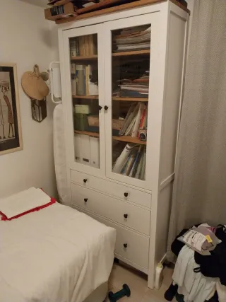 Vitrina de la serie Hemnes de Ikea. Combina la calidez de la madera con la elegancia del cristal. - Puertas con cristal. - Estantes interiores. - Cajones inferiores.