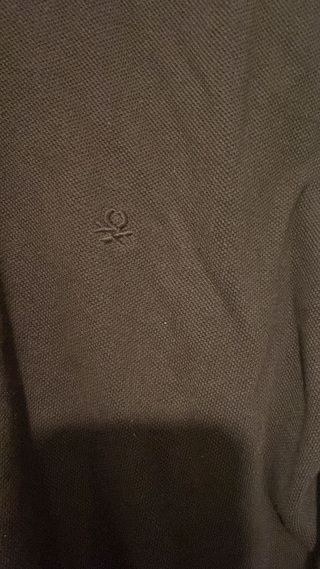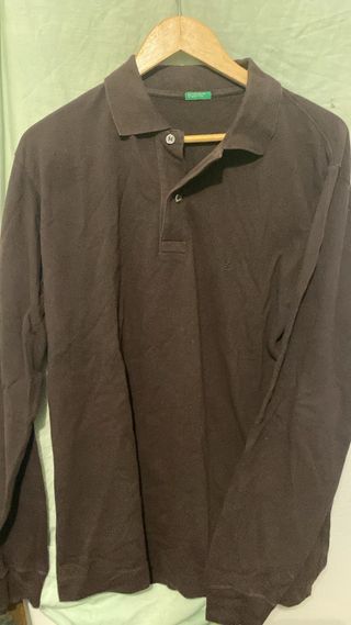 Polo de manga larga de la marca Benetton. Talla XL Negro - Cuello clásico. - Cierre de botones. - Logo bordado en el pecho.