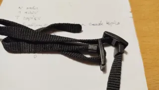 Correa para cámara Lumix GH1. - Color negro con logo blanco y rojo.