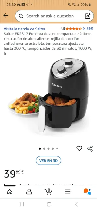 Freidora de aire Salter, ideal para comidas saludables y bajas en grasa. Su diseño compacto la hace perfecta para cualquier cocina. NUEVA. SIN ABRIR