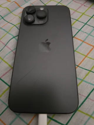 Teléfono móvil iPhone 14 Pro Max con acabado en gris espacial y 512GB de almacenamiento. - Pantalla Super Retina XDR. - Chip A16 Bionic. - Sistema de cámaras Pro avanzado. - Batería de larga duración. 86% en buen estado tiene tapa trasera quebrada y algunas señales de uso cable original y carcasa