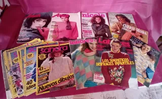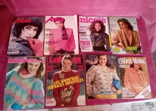 17 Revistas de moda y labores de punto vintage españolas, principalmente de las décadas de 1980 y 1990. Algunas de las publicaciones identificadas incluyen "Sandra", "Puntisimo", "Nicole", "Labores" y "Cherie Moda".