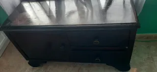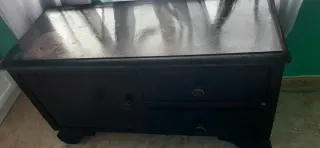 Mueble de entrada con diseño funcional y elegante. - Dos cajones para almacenamiento adicional. - Una puerta con espacio interior. - Acabado en tonos oscuros.
