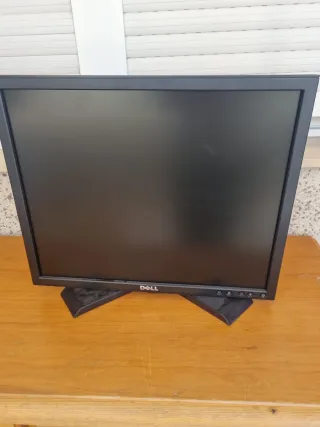 Monitor Dell en color negro. - Pantalla de visualización. - Base de soporte. - Botones de control en la parte frontal.