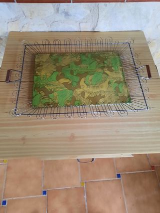 Mesa camilla redonda de 100cm de diámetro. Se encuentra en muy buen estado. - Estructura metálica. - Tablero de madera. - Funda de tela. - Vidrio protector