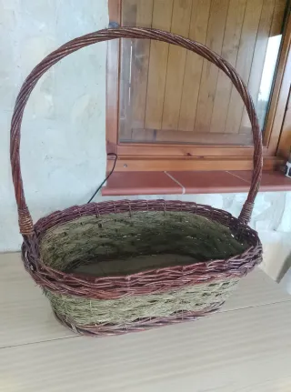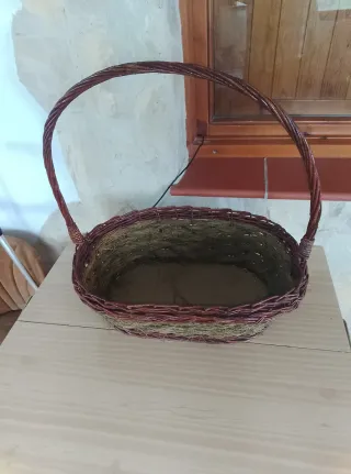 Cesta de mimbre con un diseño ovalado y un asa para facilitar su transporte. Es un accesorio versátil para el hogar. - Asa curva y robusta. - Borde superior decorativo.