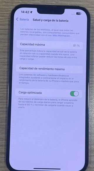 iPhone 13 Pro Max en color alpino y con 128GB de almacenamiento, en muy buen estado y totalmente funcional. - Batería al 81%. - Pantalla en perfecto estado, siempre usada con funda y protector. - Cámaras funcionando perfectamente. - Botones, Face ID, altavoces y micrófonos en correcto funcionamiento. - Incluye caja En muy buen estado (ver fotos), una muesca en parte de atrás por la funda original de carga. Se entrega restablecido de fábrica y listo para usar. Entrega en mano. ✌🏻