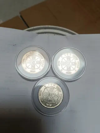 3 Monedas 100 Pesetas Plata