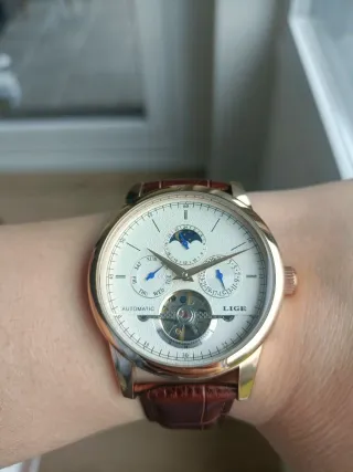 Reloj Lige Automático Dorado y Marrón