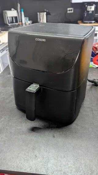 Freidora de aire Cosori en buen estado. Incluye molde para cocinar. - Color negro. - Diseño moderno. Funciona perfectamente, la tapa está un poco suelta, se ve en la foto, no afecta al cocinar