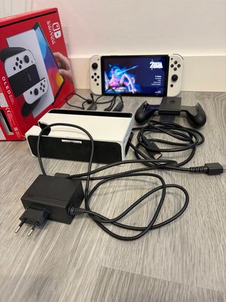 Consola Nintendo Switch modelo OLED en color blanco. Casi sin uso Esta en un estado excelente Todos los accesorios son originales - Pantalla OLED de 7 pulgadas. - Base con soporte integrado. - Almacenamiento interno de 64 GB.