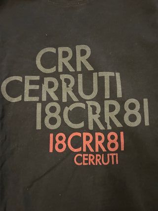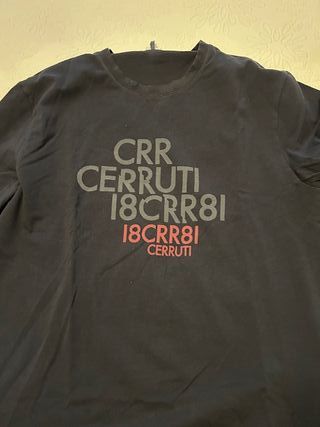 Camiseta de la marca Cerruti. - Diseño con texto gráfico. - Color negro. - Talla L - Ancho de hombros 44 - Largo 67