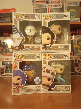 Pack de 4 figuras Funko Pop de la serie One Piece. - General Franky (1776) - Orobi (1475) - Emporio Ivankov (1906) - Trafalgar Law (1894) Perfecto estado!!