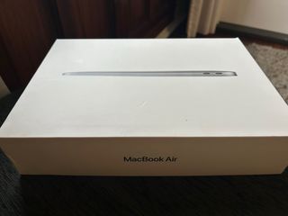 Caja original para MacBook Air. - Diseño minimalista en color blanco. - Ilustración del portátil en la tapa.
