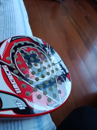 Pala de pádel Dunlop Scream 38. - usada menos de 10 veces. Tiene algúna marca de uso como se ve en la foto. Se regalan con la raqueta seis bolas pádel team de dunlop y otra raqueta de pádel (está es antigua de cuando salió el pádel, por si te saca de algún apuro) Si quieres entrega en mano me mandas un privado y modifico el anuncio.