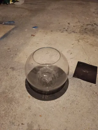 pecera de cristal con base de isla. Mis hijos querían peces naranjas. Y tuvimos uno. Ya no nos hace falta. - Material de cristal transparente.