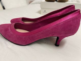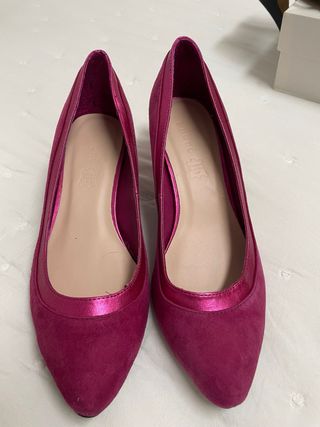 Elegantes zapatos de piel en un vibrante color rosa fucsia. - Marca: André - Talla: 38 - Material: Piel - Acabado exterior en ante y detalle brillante.