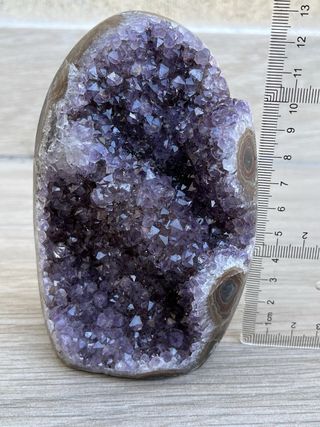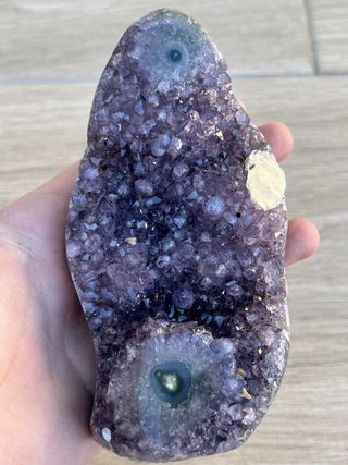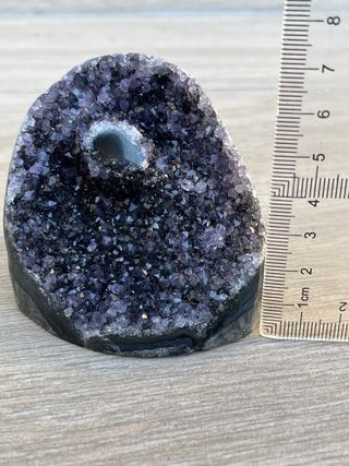 Geoda de amatista de Uruguay con dos formaciones de flor de estalactita. 1,209 kg Precio no negociable.