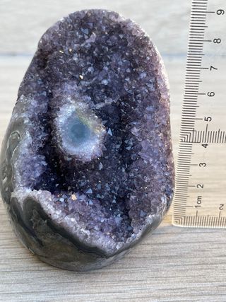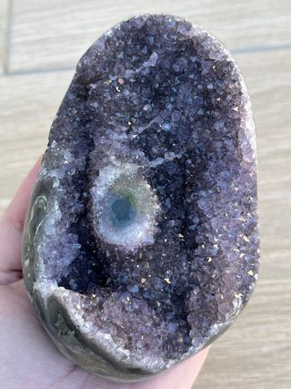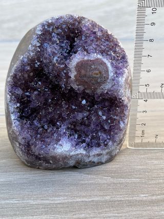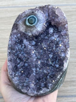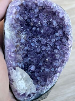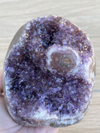 Geoda de amatista morada de Uruguay con inclusión de calcita. Tiene agata en los lados. Precio no negociable. 207 gramos
