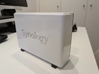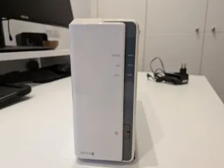 Dispositivo de almacenamiento en red Synology DS115j. - Diseño compacto y moderno. - Carcasa blanca. - Indicadores LED en la parte frontal.