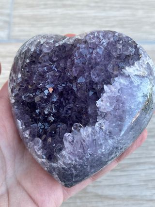 Preferible venta en persona. Corazón grande de amatista de Uruguay con formación de flor de estalactita. Viene con una peana a medida. Color muy intenso. Precio no negociable. 1,829 kg incluyendo la peana