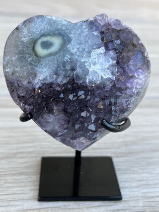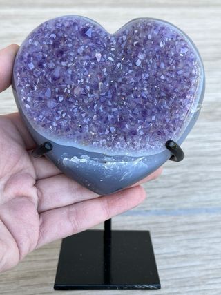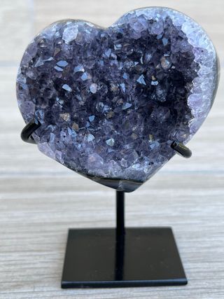 Corazón de amatista de Uruguay con peana a medida. Precio no negociable. 269 gramos incluyendo la peana