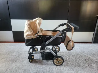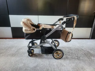 Carrito de juguete para muñecas, color beige y negro. - Capota ajustable. - Bolsa lateral a juego. - Ruedas resistentes.