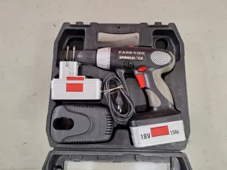 Taladro inalámbrico Parkside Spindlelock con batería de 18V. La segunda batería no carga, debido a la falta de uso - Incluye taladro, batería y cargador. - Maletín de transporte.