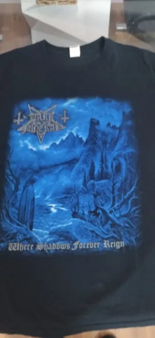 Camiseta de la banda Dark Funeral, talla L. En buen estado y apenas usada. - Diseño frontal con paisaje y logo de la banda. - Estampado Where Shadows Forever Reign en la parte inferior. Darkthrone, Mayhem, Marduk, Dissection, Emperor, Enslaved, Burzum, Watain, Enthroned, Dimmu Borgir, Satyricon, Gehenna, Judas Iscariot, Limbonic Art, Summoning, Abigor, Blut Aus Nord, Necrophobic, Nifelheim, Samael, Hecate Enthroned, Olds man Child, Leviathan