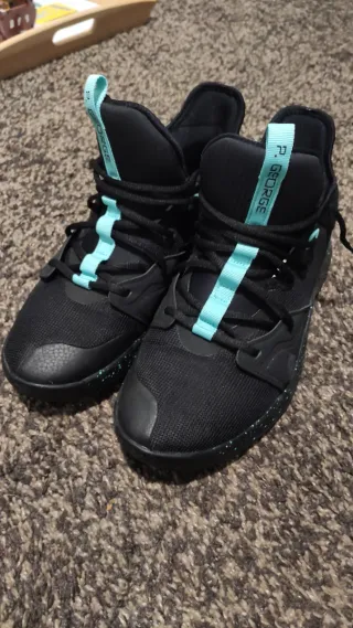 Zapatillas Nike Paul George 3 'Crater'. - Diseño en color negro con detalles en turquesa. - Cierre de cordones. - Tirador en la lengüeta. Como nuevas, usadas 3 veces en pista interior.
