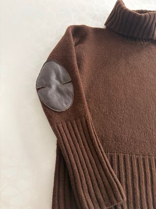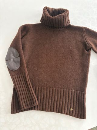 Jersey de punto de cuello alto con coderas. - Coderas de piel. - Puños y bajo de canalé. - Detalle de logo metálico en el bajo. 100% lana Usado 1 vez impecable Pone talla m pero talla muy pequeño como una S