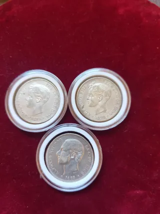 Conjunto de tres monedas de plata con el busto de Alfonso XIII. - Material: Plata. - Año: 1893. - Canto: Estriado.