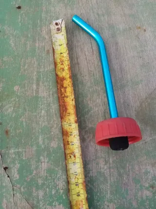 Tapón de rosca con tubo para bidón o recipiente.De radio control o lo qe quieras - Color del tapón: rojo. - Color del tubo: azul. - Material del tubo: metal.