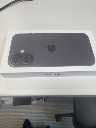 Caja original para iPhone 16. - Color negro mate. - Diseño minimalista con el logo de Apple.