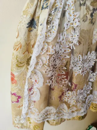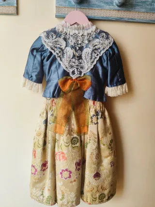 Traje de fallera, ideal para niñas de 3 a 4 años. Medidas: Sisa a sisa 28 cm Largo falda de cintura hasta bajo 50 cm Fianza 50€ a devolver el mismo día en el que se entregue el traje en perfectas condiciones como se dejó. Precio 1 día 120€ Semana fallera, preguntad sin compromiso.