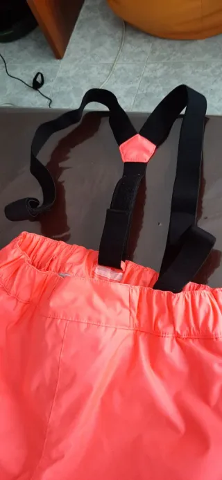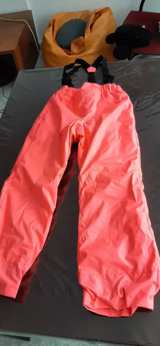 Mono de esquí o nieve en color fucsia brillante (en la foto no se aprecia bien el color), ideal para mantener el calor y la sequedad en la montaña. Cuenta con tirantes ajustables para un mejor ajuste. - Color: Naranja - Talla: 14 años - Marca: Decathlon - Tirantes ajustables