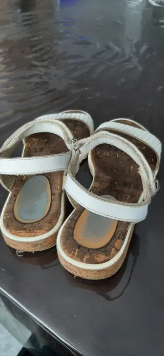 Sandalias de niña en color blanco, talla 33. Perfectas para el verano. - Diseño con tiras. - Suela de corcho. - Cierre de velcro.