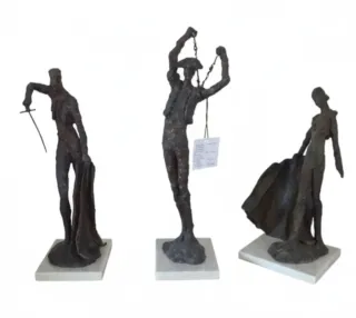 Conjunto de tres figuras con temática taurina. Cada escultura está montada sobre una base individual. Colección completa taurina numerada y sellada Escultor valenciano ( Manises ) - julian otero cortes - Figuras de estilo abstracto. - gran tamaño - Base de mármol. - 40/43/45 cm