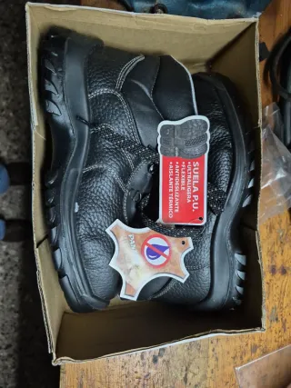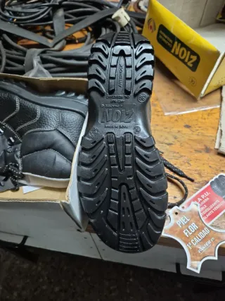 Botas de seguridad marca Zion en color negro, talla 39. Diseñadas para ofrecer protección y comodidad. - Suela de poliuretano (PU). - Ultraligera. - Flexible. - Antideslizante. - Aislante térmico.
